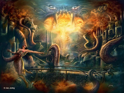 Although R'lyeh has sunk deep in the Pacific Ocean, from time to time the city emerges for a short time. At such times, Cthulhu's dreams become stronger, causing epidemics of religious fanaticism, insanity, and riots throughout the world.