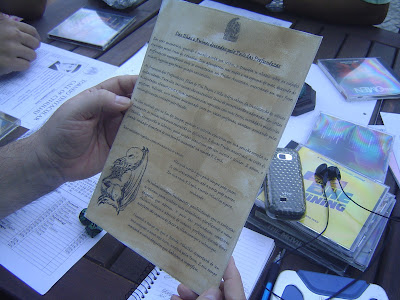 Os handouts da aventura "A Fossa do Diabo". Esses props foram feitos no capricho para o Torneio Tentacular, as fotos eram em alta qualidade.
