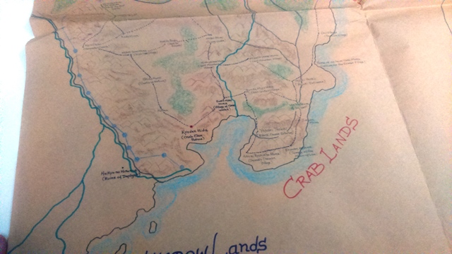 Meu plano era usar esse mapa como um grande prop da campanha que eu ia narrar. O cartógrafo responsável por criar o mapa teria colocado pistas escondidas que uma vez resolvidas levariam até um vasto tesouro escondido.
