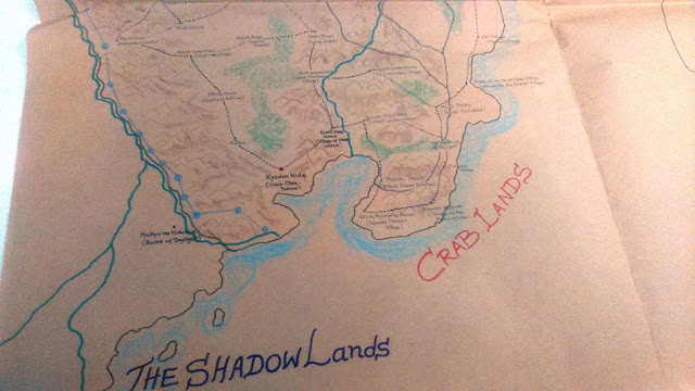 De todos os mapas que fiz, esse é um dos que mais gostei. Coloquei uma série de informações sobre a ambientação fazendo de conta que elas foram inseridas ali pelo cartógrafo que fez o mapa.