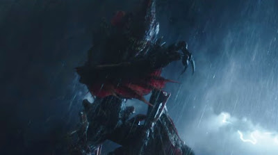 Em determinado momento do filme, sabemos que a mãe do herói foi executada no tal Reino da Trincheira como punição por ter tido um filho na superfície. E a execução teria seguido uma espécie de Ritual de Sacrifício no qual a vítima é entregue para o Karathen, um lendário monstro submarino, verdadeiro Leviatã temido por todos os habitantes das profundezas e cuja existência é tida como mítica.