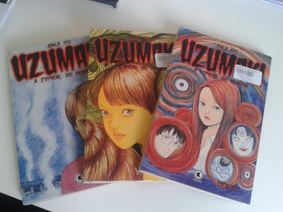 Não costumo ler mangás. Não sei o motivo ao certo, mas deste gênero de HQ até hoje só li Akira e Ghost in the Shell. Porém, o meu amigo César Augusto é um perito no assunto e, certo dia, ele comentou sobre um mangá que estava lendo no qual a loucura imperava. E este HQ é Uzumaki, a Espiral do Horror, escrito e desenhado por Junji Ito.